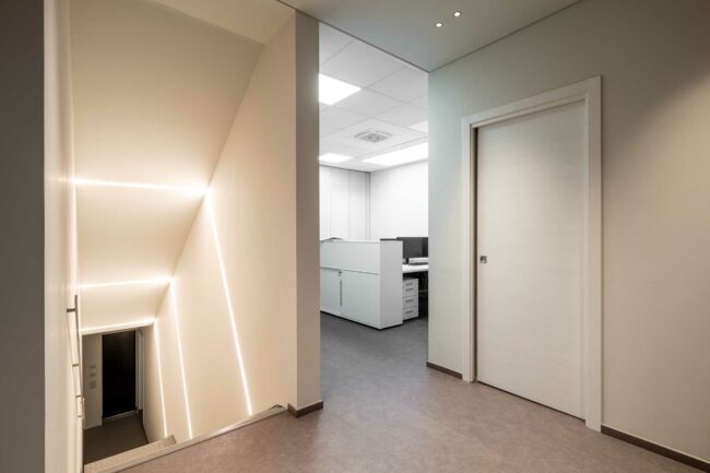 Progetto di allestimento dell’ingresso della sede ITS Marco Polo Academy di Venezia: soluzioni di arredo per postazioni operative, area accoglienza e attesa studiate per supportare studenti, personale e visitatori.