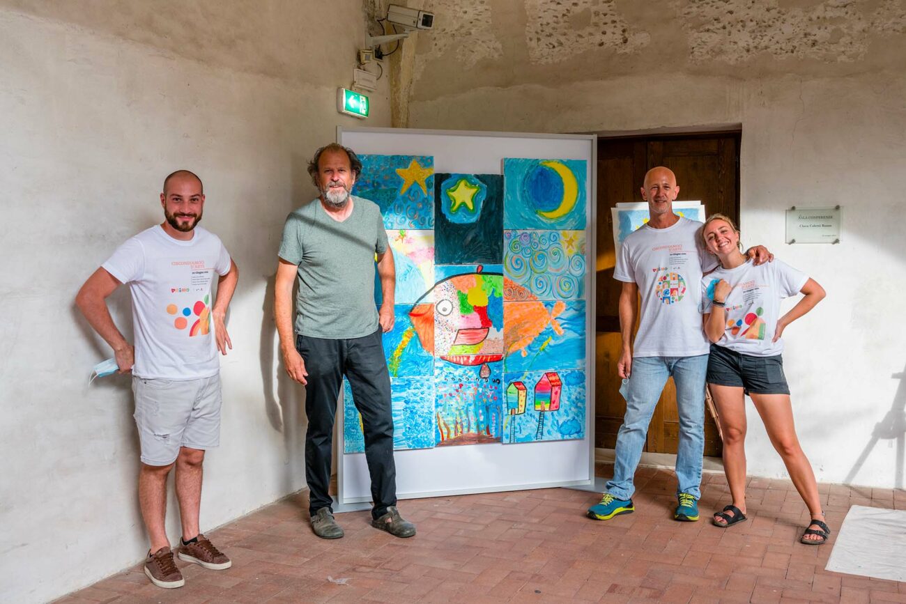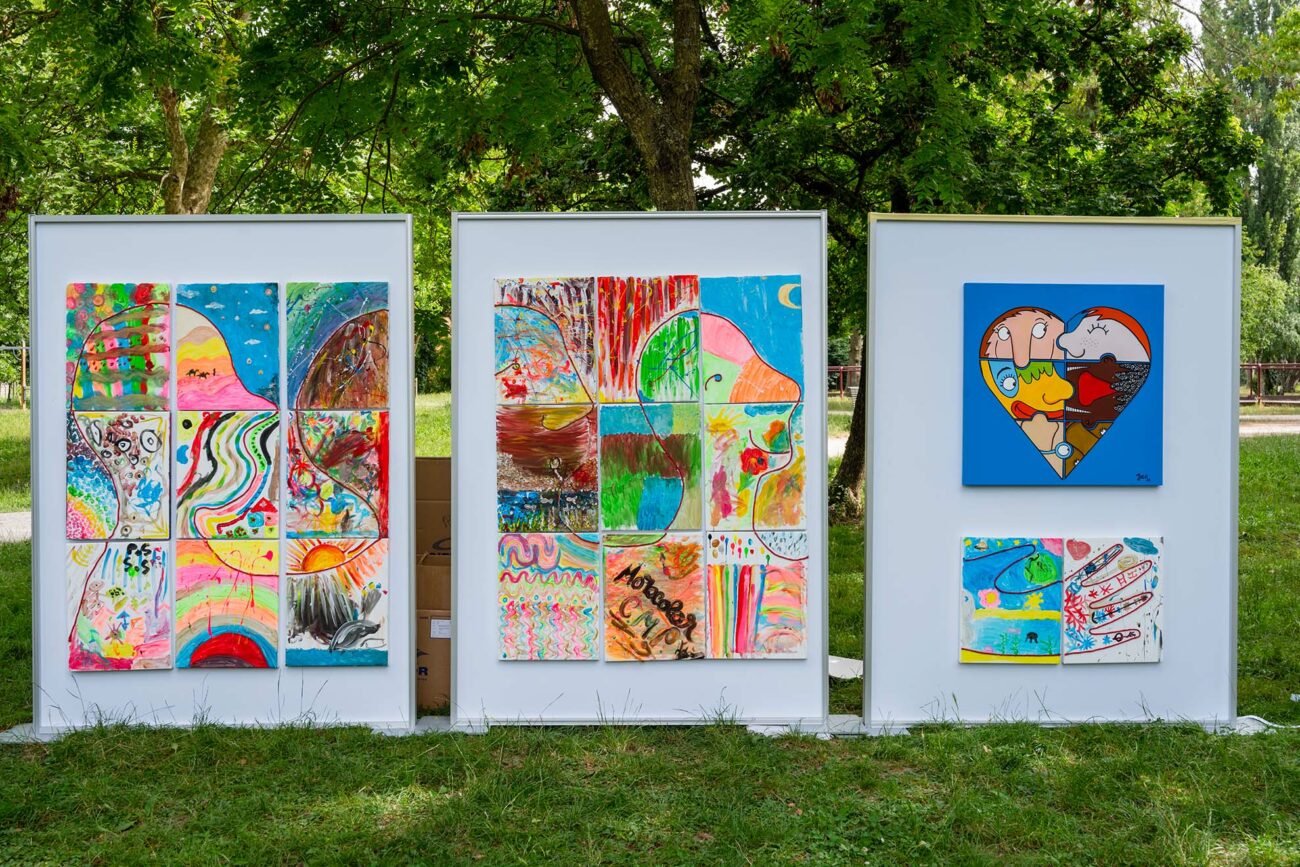 Al termine dell’evento tutte le tele sono state posizionate le une accanto alle altre per creare un’opera comune più grande, più bella e completa.
