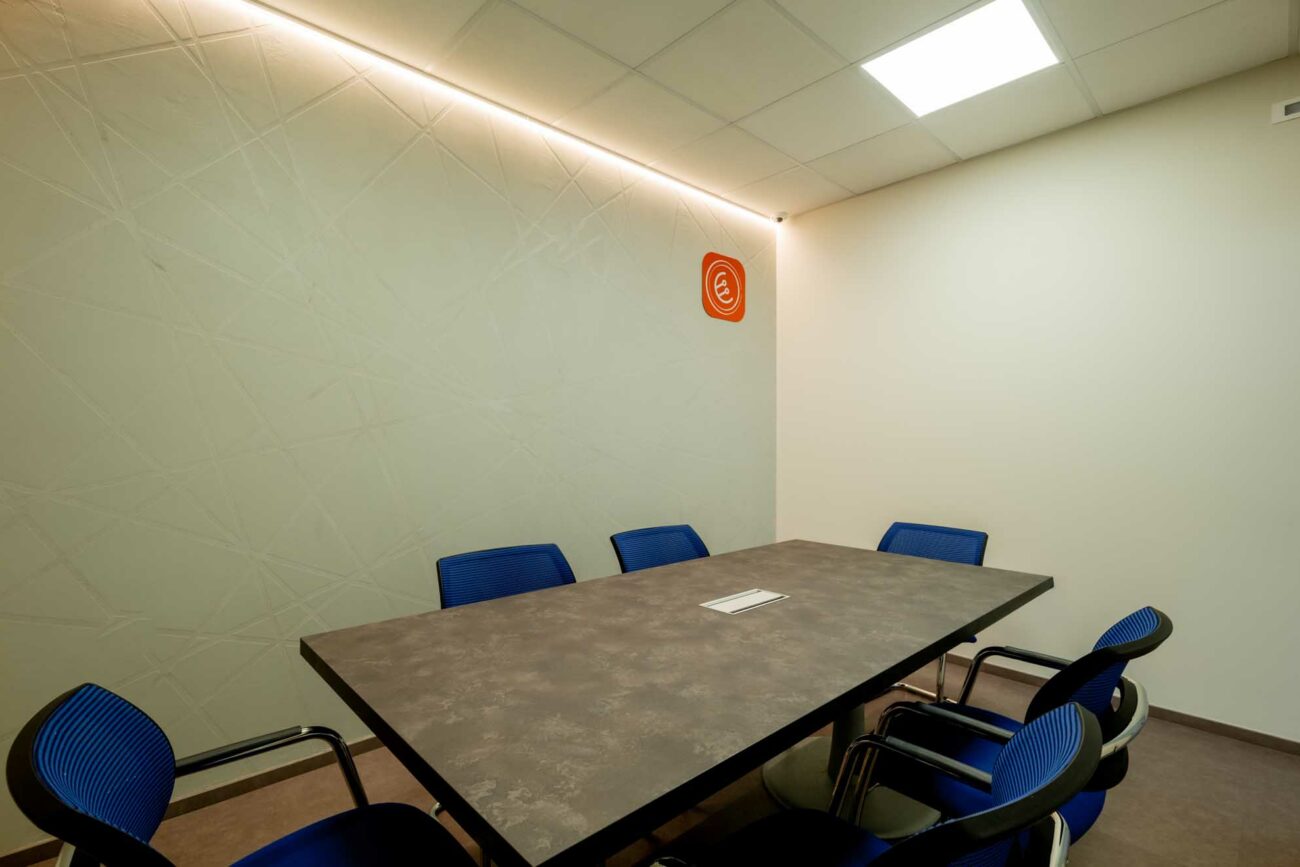 Gli arredi presenti nella sala riunioni sono in parte recuperati e reinterpretati, in linea con l’approccio sostenibile di Obbiettivo Arredo. Il recupero e la valorizzazione degli arredi esistenti rappresentano una scelta progettuale consapevole, orientata alla riduzione degli sprechi attraverso il riutilizzo intelligente delle risorse. Questo processo include la verifica delle prestazioni funzionali, eventuali interventi di aggiornamento e l’integrazione con nuovi elementi, al fine di garantire efficienza, comfort e coerenza estetica.
