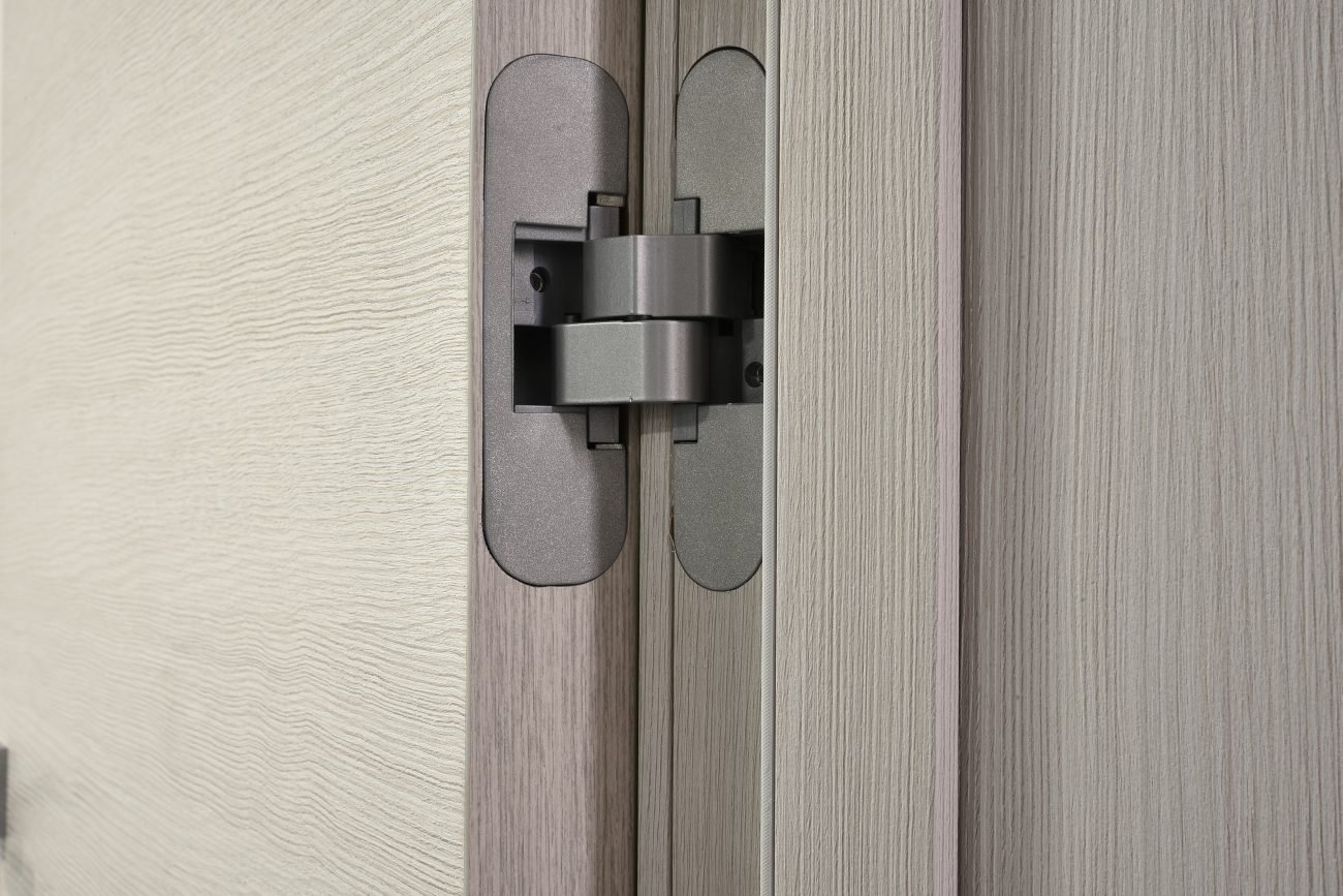 Porte ditta EDILGREEN, finitura larice luce con cerniere a scomparsa e serratura con riscontro magnetico.