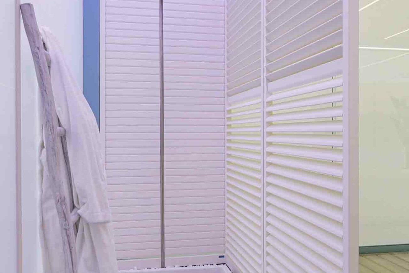 Imago offre la possibilità di modulare gli spazi interni in base alle funzioni desiderate, anche grazie al modulo Private (optional), un angolo privato utilizzabile come spogliatoio, deposito per sedie e lettini, guardaroba, o stoviglie. Inoltre, Imago® presenta una pedana alta 17,5 cm con la capacità di compensare dislivelli, a cui si possono abbinare diversi tipi di piani di calpestio.