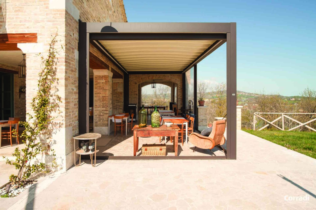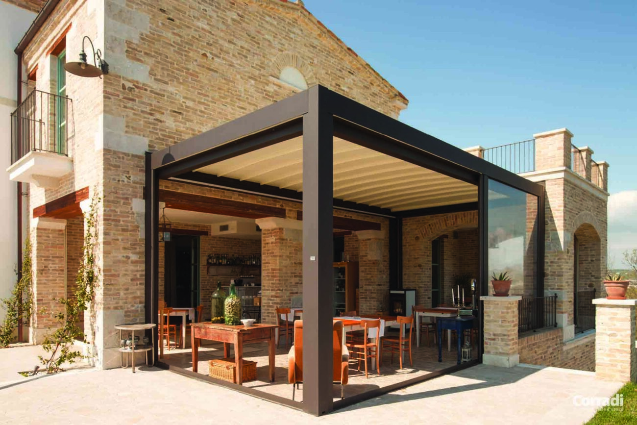 Rispettando la dialettica di necessità e libertà , così come sostenuto dallo storico dell’architettura Francesco Dal Co, Pergotenda Maestro offre la possibilità di esprimersi in modo del tutto innovativo, fornendo uno spazio unico per godere del tempo ogni giorno.