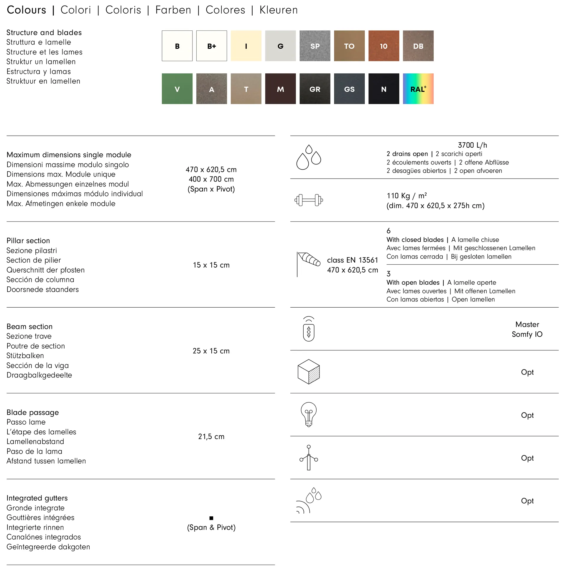 - Disponibilità della versione Jazz, con gronde cromate (mentre la pergola bioclimatica Maestro può essere scelta nella versione bicolor Rock).