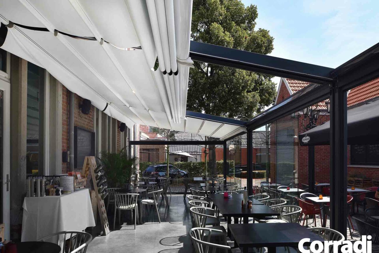Palladia® rappresenta un prodotto innovativo e affascinante, adatto sia a chi cerca un tocco di classe per il proprio spazio esterno, sia a ristoranti e locali che desiderano proteggere terrazze e dehor senza interrompere l’armonia con il paesaggio circostante.
