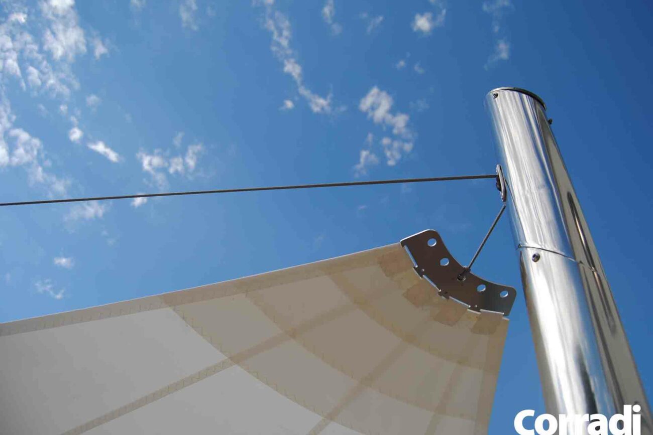 Un elemento distintivo delle vele ombreggianti Sun Sails di Corradi è il loro meccanismo di avvolgimento. Sia che si tratti di un sistema motorizzato o manuale, le vele possono essere completamente avvolte in pochi secondi, rendendole estremamente pratiche e adattabili a qualsiasi situazione. Questa funzionalità , combinata con l’eleganza del design, le rende perfette sia per gli spazi residenziali che per quelli commerciali.
