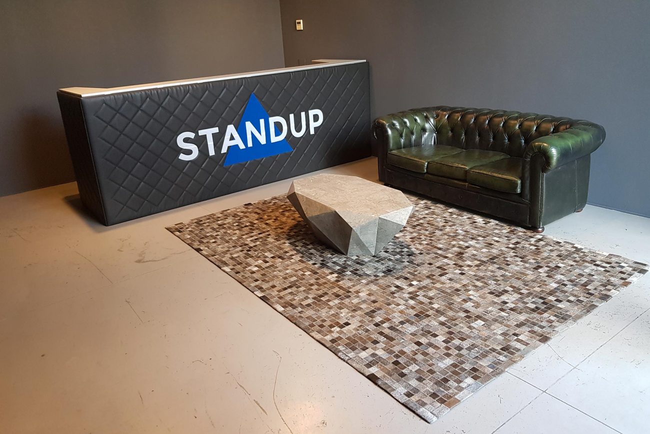 Il progetto della nuova reception di Stand Up Srl ha previsto una rivisitazione complessiva di materiali e forme oltre che di finiture.